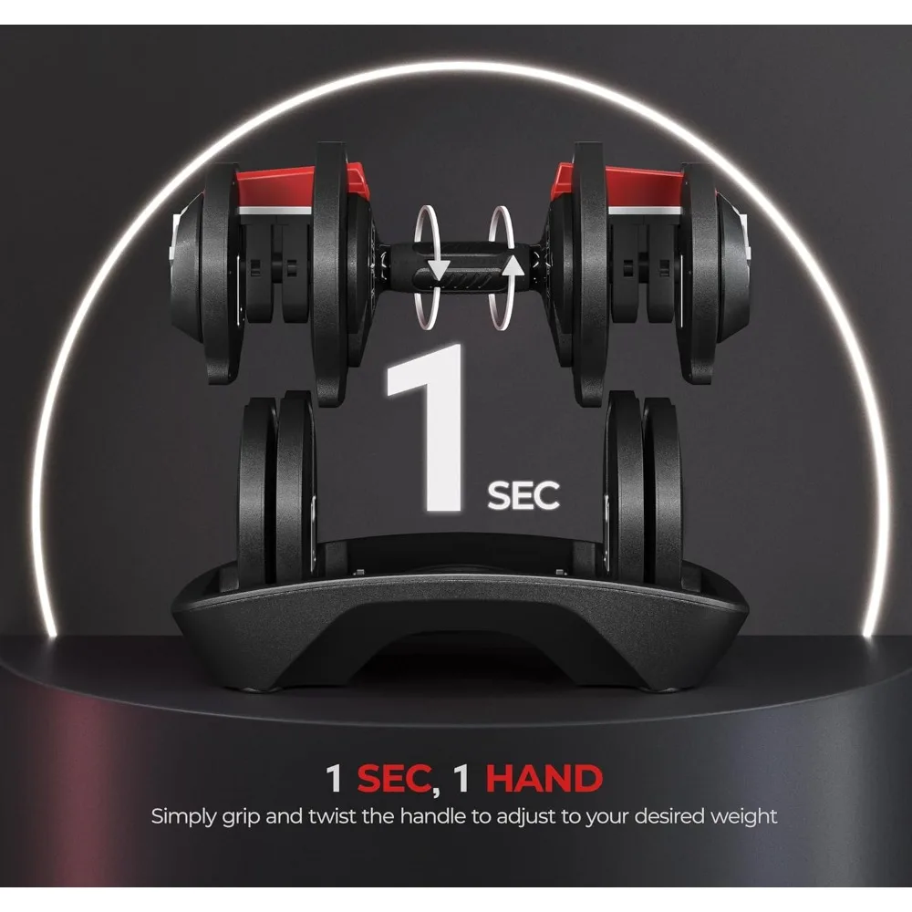 1-SED ADJUSTMENT FEATURE:With just a quick grip, twist, and lift of the selectorized anti-slip handle, you can easily switch the 12 adjustable weight dumbbells settings in just one second. The hassle-free customization is aided by clear dials that ensure easy readability